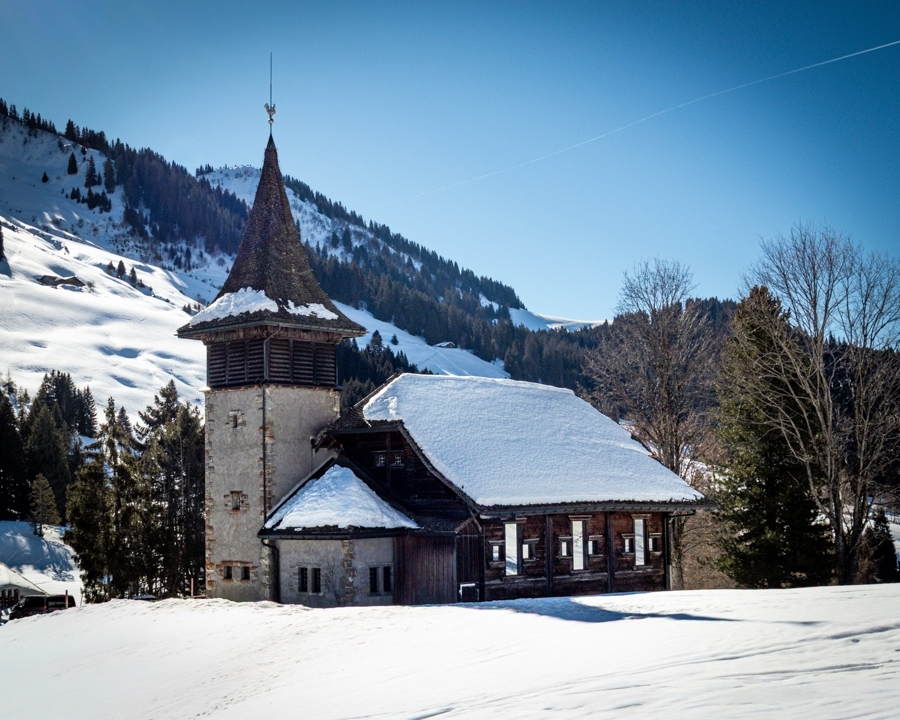Les Mosses ChurchIn the unspoilt resort of Les Mosses, the church welcomes its faithful at the foot of the ski pistes.